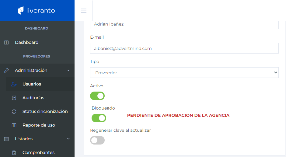 Cuando se genera un usuario el mismo se encuentra bloqueado, hasta que la agencia lo habilita, para poder comenzar a utilizar el portal es necesario que el usuario se aprobado.