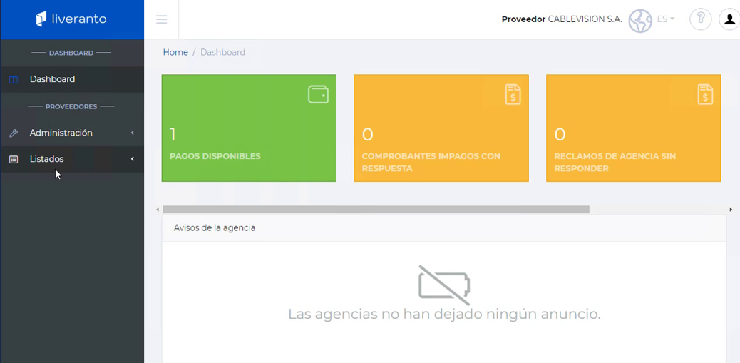 Con solo presionar sobre la carpeta en su dashboard se expone la siguiente ventana, donde puede ver los pagos disponibles: