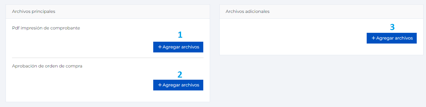 En esta sección se deben adjuntar los comprobantes que avalan el comprobante, estos son: